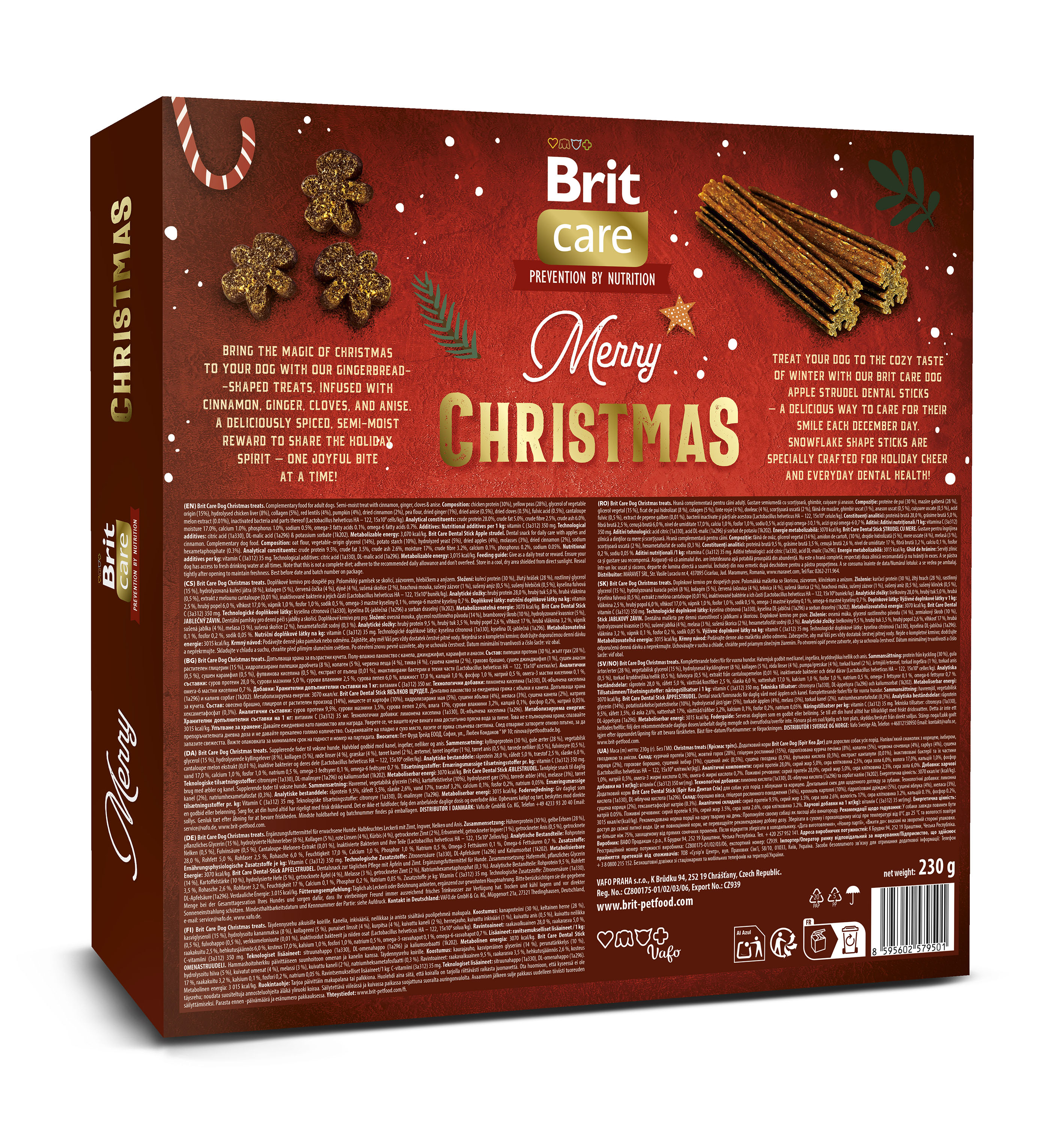 - 21 vnt. Brit Care Dog Christmas Treats – kalėdiniai skanėstai imbierinių sausainių formos, kasdieniam palepinimui.