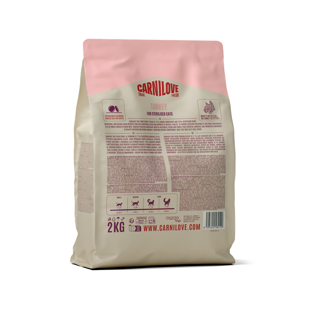 CARNILOVE TRUE FRESH Cat Dry Turkey Adult Cat Sterilised sausas pašaras katėms 2 kg