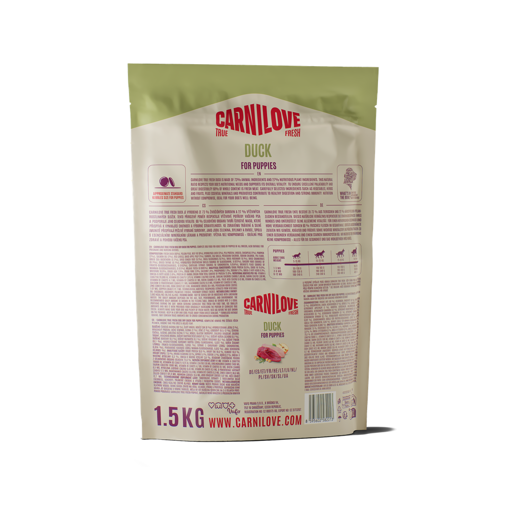 CARNILOVE TRUE FRESH Dog Duck Puppy sausas pašaras šuniukams 1,5 kg